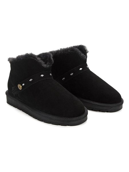 – zapięcie: bez- praktyczna szlufka ułatwiająca zakładanie- noski: zaokrąglone- wyściółka: ogrzewająca skóra owcza i materiał tekstylny- skórzana wkładka: tak- detale: ozdobne nity- podeszwa: antypoślizgowa