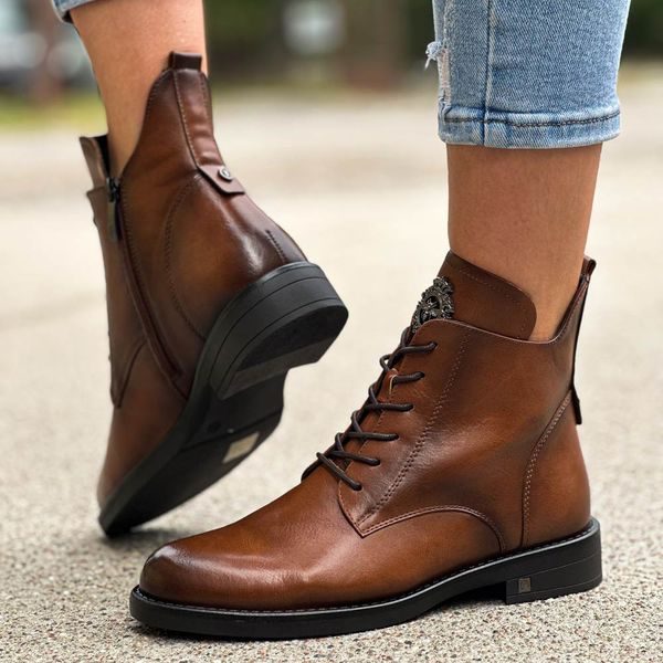 Brązowe botki damskie na płaskim obcasieto idealny wybór na chłodną jesień oraz zimę, łączący styl z funkcjonalnością. Cholewka wykonana z matowego materiału podobnego do skóry nadaje butom nowoczesny i elegancki wygląd, a jednocześnie zapewnia trwałość i odporność na warunki pogodowe. Praktyczne zapięcie na suwak oraz sznurowanie pozwalają na idealne dopasowanie buta do nogi, co zwiększa […]