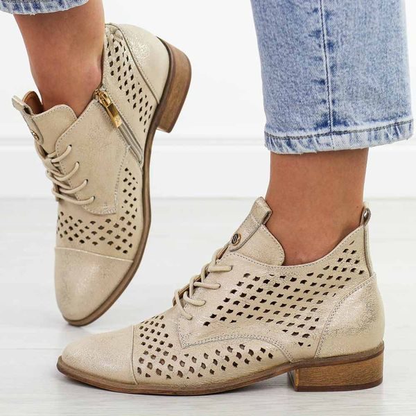 Złote ażurowe botki damskie Potocki 12091
