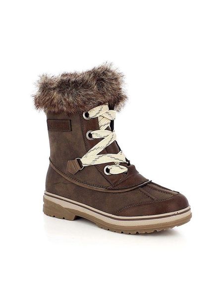 – zapięcie: sznurowanie z bocznym suwakiem- noski: zaokrąglone- noski i zapiętki: wzmocnione- detale: obszycie ze sztucznego futerka- wyściółka: ogrzewający materiał tekstylny- podeszwa: profilowana