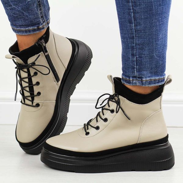 Beżowe skórzane botki damskie na platformie T.Sokolski Z24-217