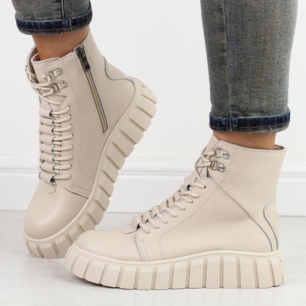 Beżowe skórzane botki damskie na platformie Filippo Dbt6312/25