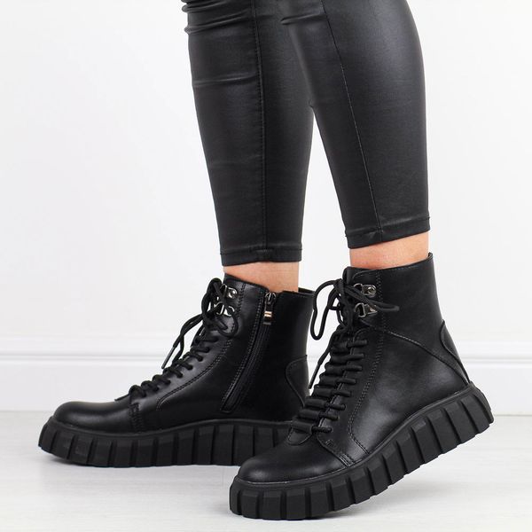Czarne skórzane botki damskie na platformie Filippo Dbt6312/25
