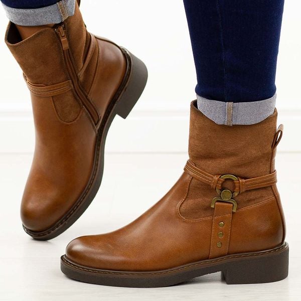 Camelowe płaskie botki damskie M.Daszyński Sa252-12