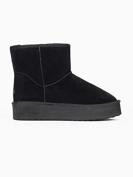 – skóra welurowa- zapięcie: bez- noski: zaokrąglone- wyściółka: ogrzewająca skóra owcza i materiał tekstylny- forma obcasa: platforma- skórzana wkładka: tak- podeszwa: antypoślizgowa