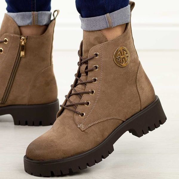 Beżowe zamszowe botki damskie na traperze Potocki 12672