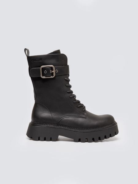 Trapery damskie wykonane z wysokiej jakości skóry ekologicznej w klasycznym czarnym kolorze. Model wyróżnia się ozdobną klamrą umieszczoną na górze cholewki, która dodaje całości stylowego charakteru. Buty są sznurowane, a dodatkowy zamek z boku zapewnia wygodne zakładanie i zdejmowanie. Stabilna podeszwa i solidne wykonanie sprawiają, że trapery świetnie sprawdzą się zarówno na co dzień, jak […]