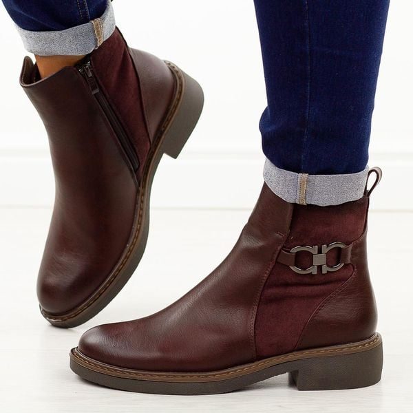 Bordowe płaskie botki damskie Jezzi asa252-11