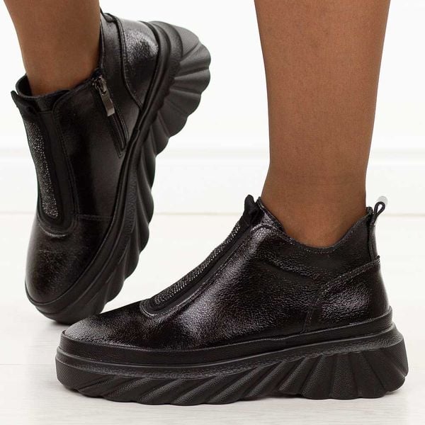 Czarne skórzane botki damskieto propozycja dla kobiet, które cenią sobie połączenie elegancji, komfortu i funkcjonalności w jednym obuwiu. Cholewka wykonana została z wysokiej jakości skóry naturalnej, dzięki czemu buty są trwałe i odporne na codzienne użytkowanie. W bocznej części umieszczono rozciągliwą gumę ozdobioną błyszczącym detalem, co nadaje botkom subtelnego uroku i sprawia, że świetnie wpisują […]