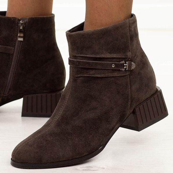 Brązowe zamszowe skórzane botki damskie na obcasie DiA 52-651