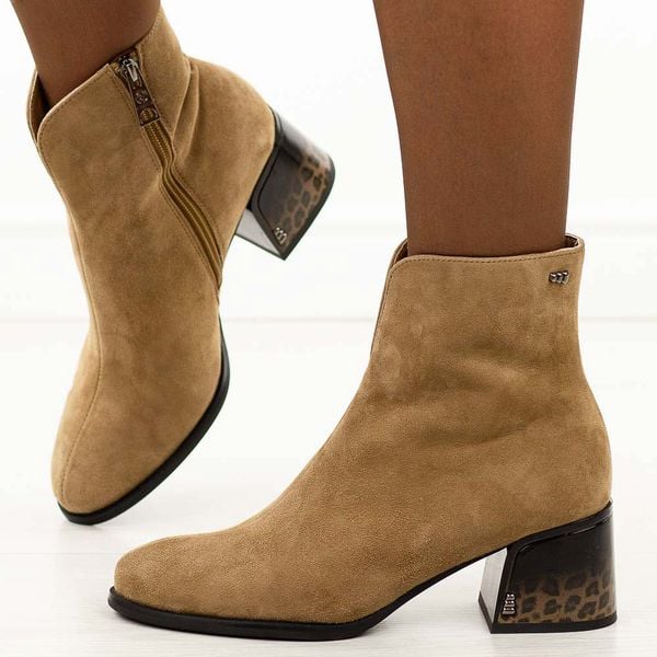 Camelowe zamszowe skórzane botki damskie na obcasie Vinceza 66806