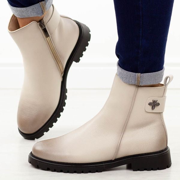 Beżowe botki damskie na traperze Potocki 19314