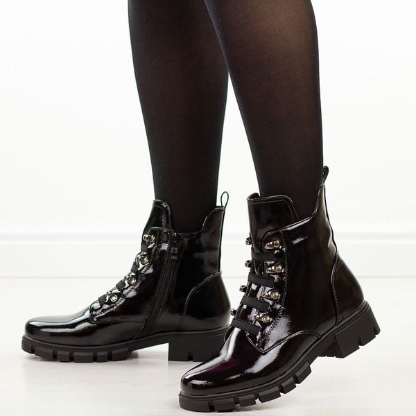 Czarne lakierowane trapery damskie M.Daszyński 23123-10