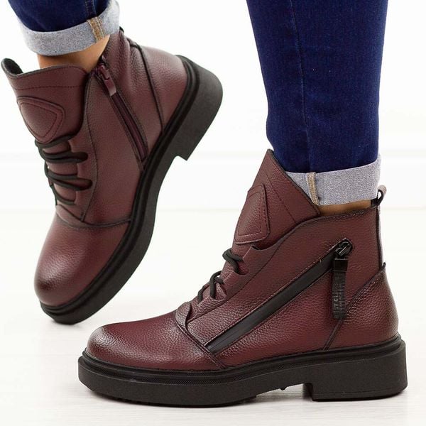 Bordowe skórzane botki damskie Sergio Leone Bt25200S