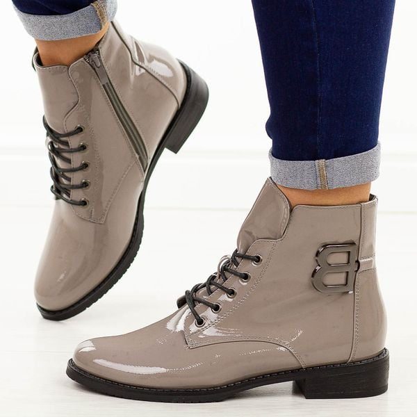 Szare lakierowane botki damskie zimowe Jezzi Asa62-119