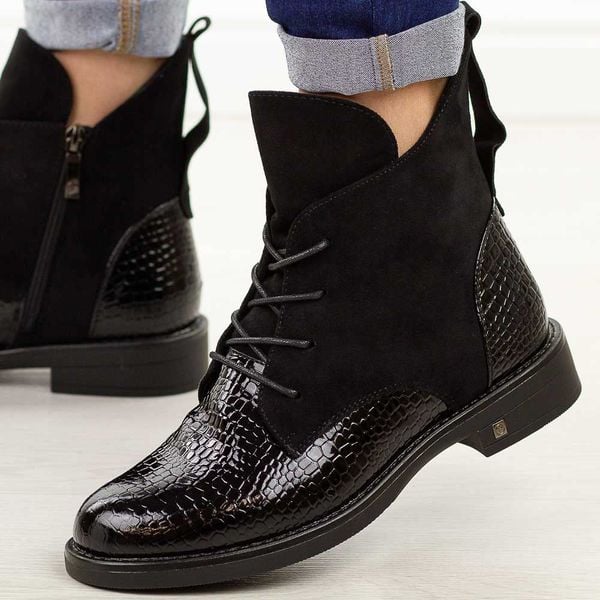 Czarne botki damskie na płaskim obcasieto doskonały wybór na chłodną jesień i zimę. Wykonane z kombinacji materiału skóropodobnego lakierowanego oraz zamszopodobnego, te botki wyróżniają się nie tylko stylowym wyglądem, ale także funkcjonalnością. Zapinane na suwak oraz dodatkowo sznurowane, pozwalają na idealne dopasowanie do stopy, co zwiększa komfort noszenia. Dzięki temu możesz cieszyć się wygodą przez […]