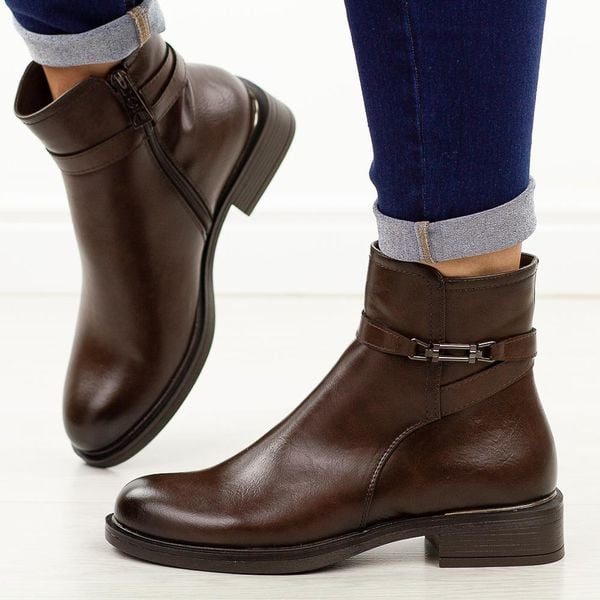 Brązowe płaskie botki damskie Vinceza 58572