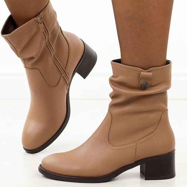 Beżowe skórzane botki damskie M.Daszyński Ol23-4