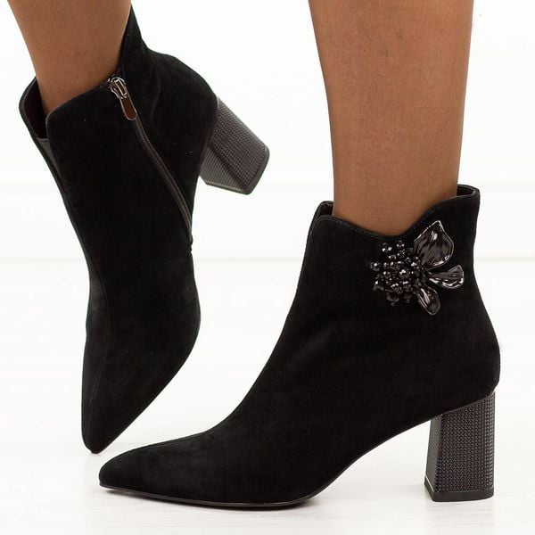 Czarne zamszowe skórzane botki damskie na słupku DiA 686
