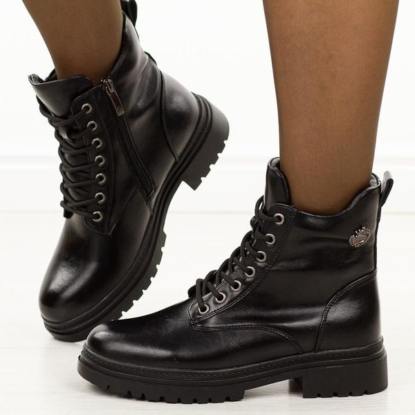 Czarne botki damskie na traperze Potocki 19324