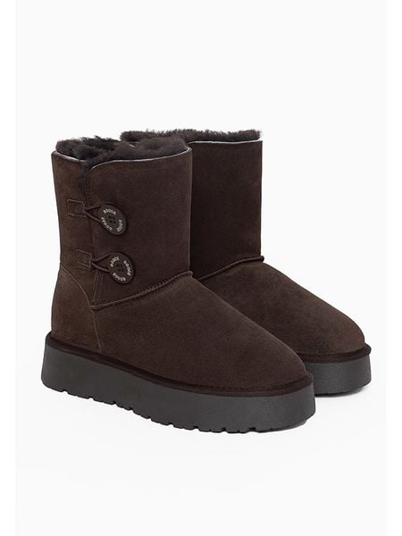 – zapięcie: bez- noski: zaokrąglone- zapiętki: wzmocnione- wyściółka: ogrzewająca wełna- detale: ozdobne guziki- forma obcasa: platforma- podeszwa: antypoślizgowa