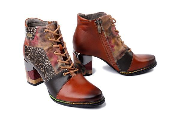 Trzewiki damskie. Naturalna skóra. Miękka, skórzana wkładka. Podwójne zapięcie, zamek plus sznurowadła. Wygodny, stabilny obcas typu słupek.