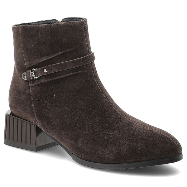 Brązowe Botki S.Barski Zamszowe Buty Damskie
