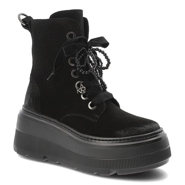 Czarne Botki Karino Stylowe Obuwie Damskie Na Platformie