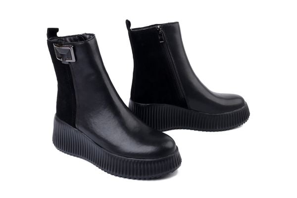 Botki damskie. Naturalna skóra. Ocieplone futerkiem. Zapięcie na zamek. Wygodny, antypoślizgowa podeszwa. Tęgość G.