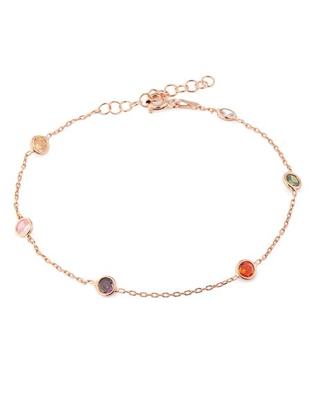 – materiał: srebro Sterling próby 925- powłoka 1: rodowanie- powłoka 2: w kolorze różowego złota- typ łańcuszka: ankier- zapięcie: federing- rodzaj kamienia: kamień ozdobny- kolor kamienia: jasnoróżowy, fioletowy, pomarańczowy i zielonyWskazówka: Zdjęcie produktu w powiększeniu.