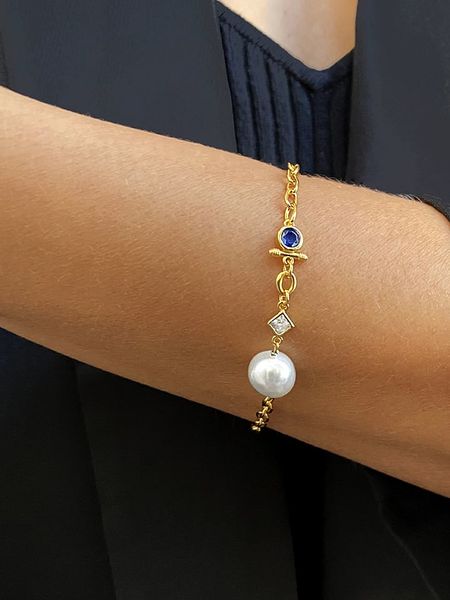 DI GIORGIO Pozłacana bransoletka z cyrkoniami i perłą rozmiar: onesize