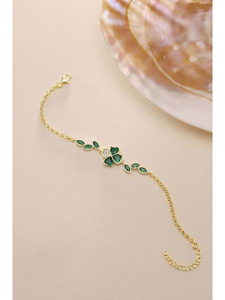 – materiał: srebro Sterling próby 925- powłoka: złoto- typ łańcuszka: ankier- zapięcie: karabińczyk- rodzaj kamienia: cyrkonia- kolor kamienia: zielony, bezbarwny- regulacja długości: takWskazówka: Zdjęcie produktu w powiększeniu.