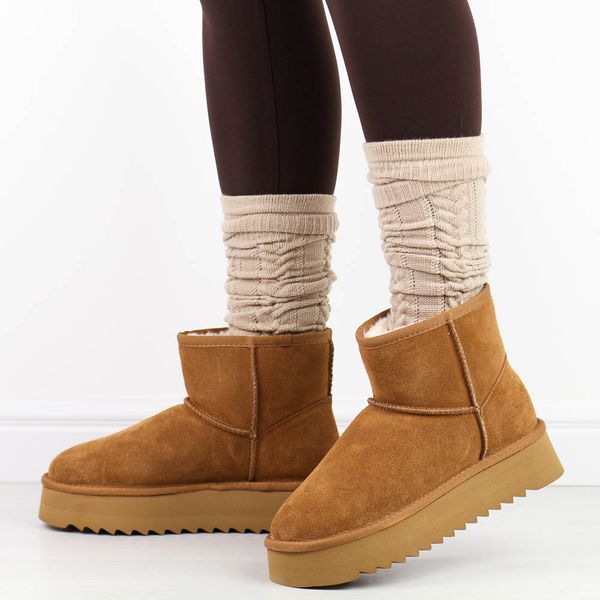 Camelowe skórzane ciepłe zimowe mukluki, eskimoski T.Sokolski 531