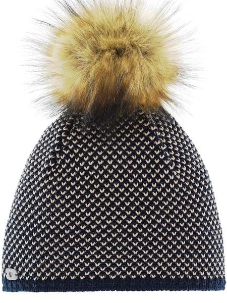 – z dodatkiem wełny merino- właściwości termoizolacyjne- detale: pompon ze sztucznego futerka- wzór splotu: luźny- wzór: colour blocking