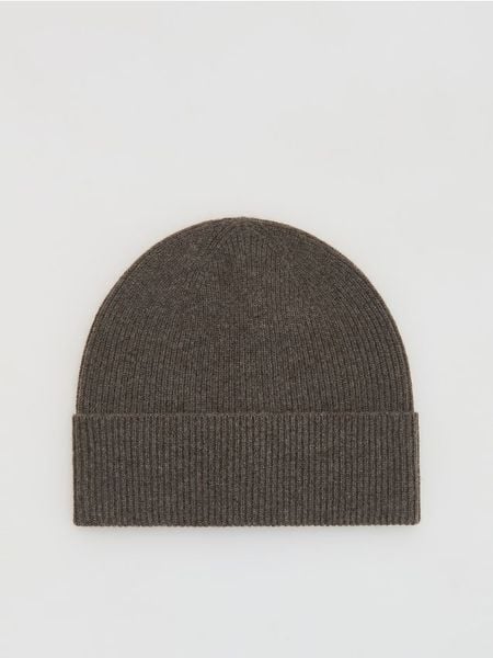 Czapka typu beanie, wykonana z wełny merino z dodatkiem kaszmiru.