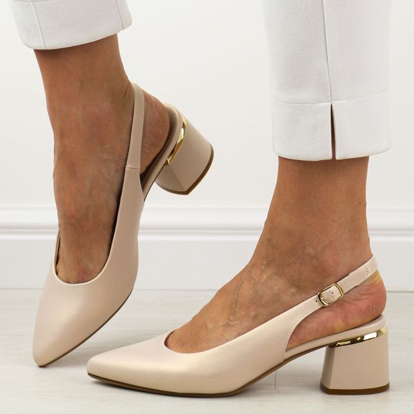 Beżowe czółenka damskie na obcasie bez pięty Sergio Leone sk175