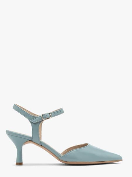 Niebieskie czółenka z odkrytą piętą z linii RYŁKO.Model wykonany ze skóry licowej.Podszewka i wyściółka skórzana.Szpilka lakierowana o wysokości 6,5 cm.Wysokość obcasa uśredniona dla rozmiaru 37.Nosek w szpic.But posiada ozdobną klamerkę w kolorze srebrnym.Dystrybutor: Brawo Sp. z o.o. ul. Dworcowa 19, 34-130 Kalwaria Zebrzydowska; [email protected] pochodzenia: POLSKA