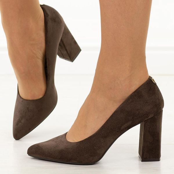 Czekoladowe czółenka damskie na słupku Sergio Leone Pb216