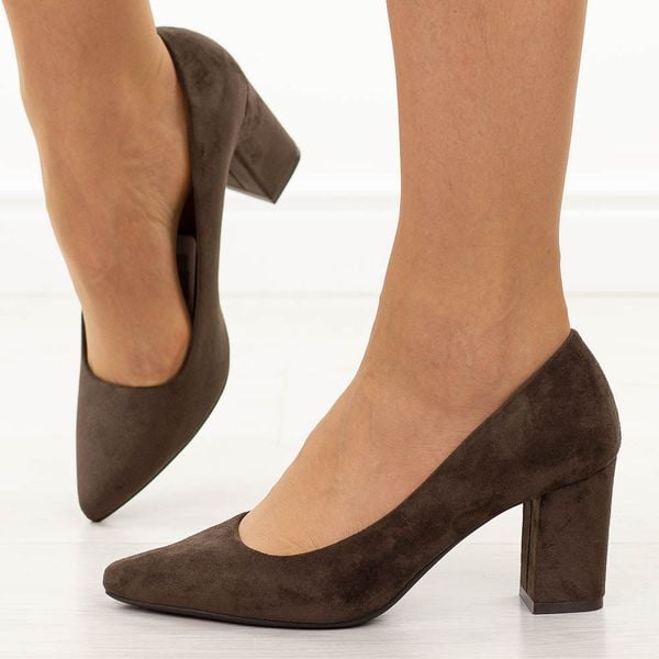 Czekoladowe czółenka damskie na słupku Sergio Leone Pb414