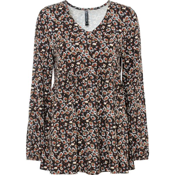 Bluzka shirtowa w kwiaty, z długim rękawem i dekoltem w serek. Dł. w rozm. 40/42 ok. 74 cm. Można prać w pralce.