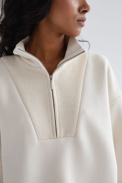 Bluza damska z zamkiem na dekolcie w kolorze LIGHT BEIGE- CLERMONT-UNI