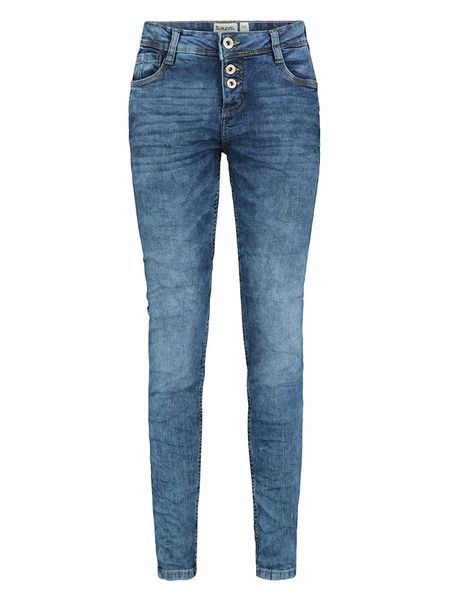 – wysokość pasa: regular waist- fason: skinny fit- krój nogawek: wąski- szlufki na pasek: tak- zapięcie: listwa guzikowa- kieszenie: 5 klasycznych- naszywki: ze skóry syntetycznej- przetarcia: tak