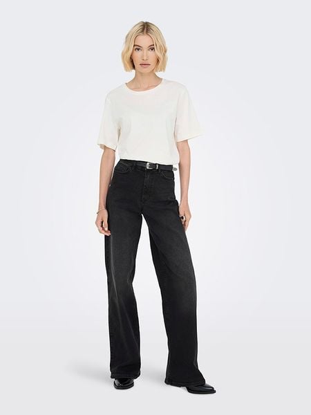 – wysokość pasa: high waist- fason: comfort fit- krój nogawek: szeroki- zapięcie: guzik i suwak- szlufki na pasek: tak- kieszenie: 5 klasycznych- naszywki: ze skóry syntetycznej- przetarcia: tak