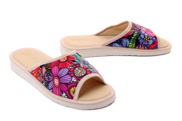 Kapcie damskie. Kolekcja Natural Style firmy Meteor. Przewiewna, tekstylna cholewka. Elastyczne, nie zostawiające śladów podeszwy.