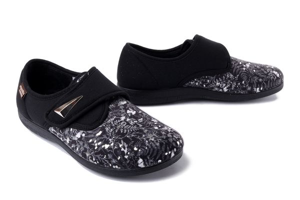 Kapcie damskie. Cholewka z tkaniny polarowej. Miękka wkładka. Zapięcie na rzep. Elastyczna, antypoślizgowa podeszwa.