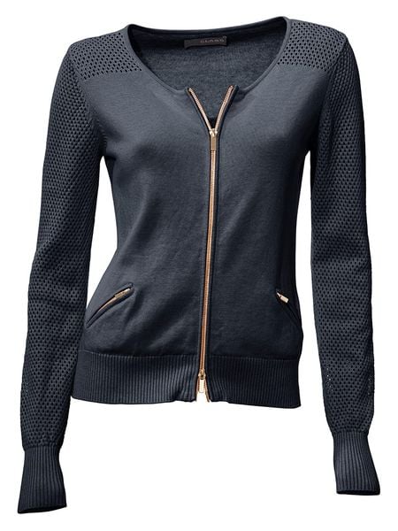 – z dodatkiem jedwabiu- dekolt: okrągły- zapięcie: suwak- ściągacz: zakończenia rękawów, dolny brzeg- detale: dekoracyjne zamki błyskawiczne- krój: wąski- look: jednokolorowy