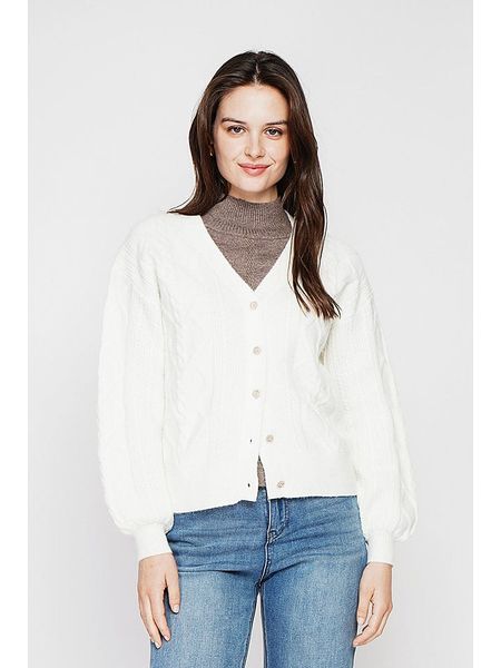 – dekolt: V- zapięcie: listwa guzikowa- krój rękawów: bufiasty- detale: nakładane rękawki- wzór splotu: warkocz- krój: prosty- look: jednokolorowyWskazówka: Na metkach odzieży tej marki znajdują się rozmiary francuskie. Rozmiarówka została przez nas przeliczona. Podane do wyboru warianty rozmiarów odpowiadają standardowym europejskim rozmiarom konfekcji. Prosimy zapoznać się z zamieszczonym objaśnieniem rozmiarów.