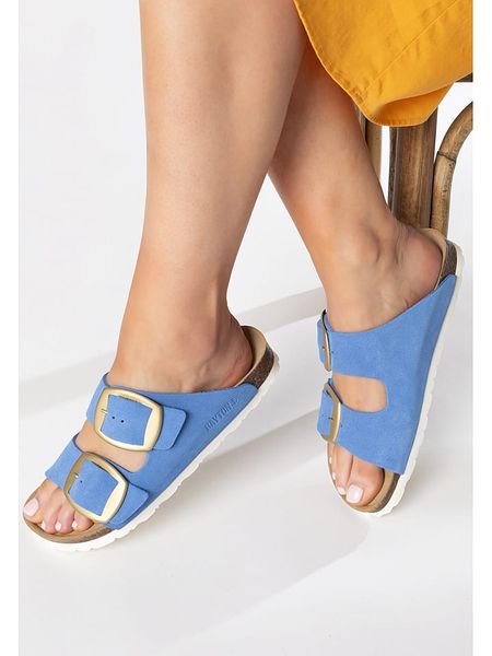 klapki bez obcasa klapki na średnim obcasie obuwie damskie bayton klapki ze sklepu limango.pl obuwie damskie limango.pl niebieskie klapki klapki bayton