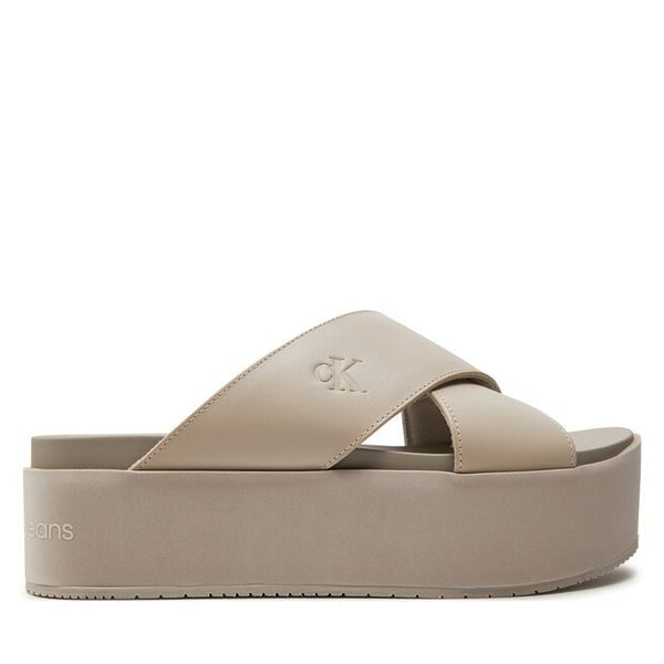 Klapki Calvin Klein Jeans Flatform Cross Mg Uc YW0YW01349 Beżowy