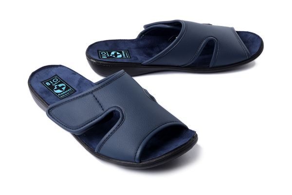 Granatowe klapki. Elastyczna cholewka. Płaska podeszwa. Wsuwane. Komfortowe.